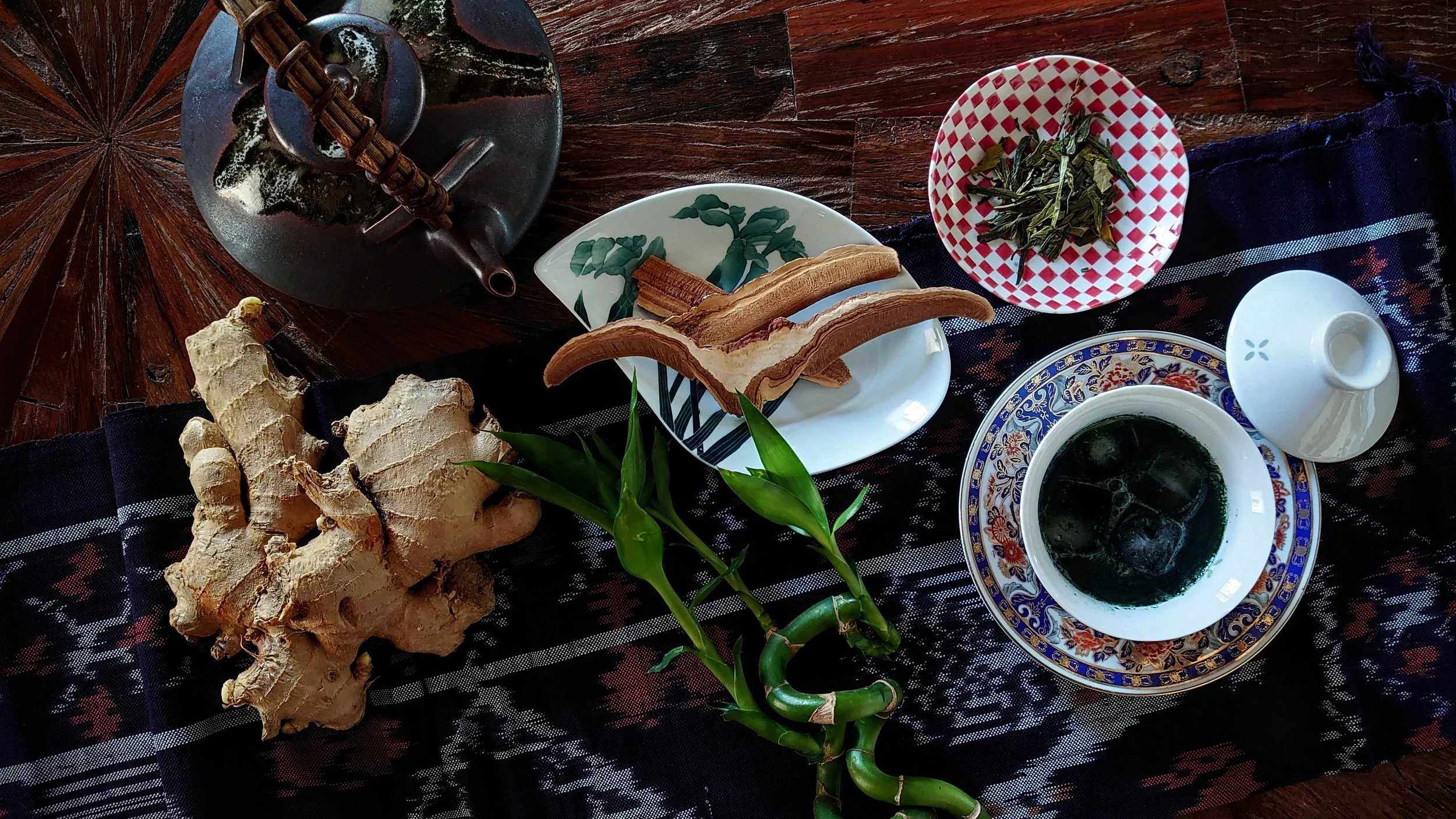 Taichi on Koyasan - Longjing tea, gin, ginger ale, ginger juice, reishi honey syrup