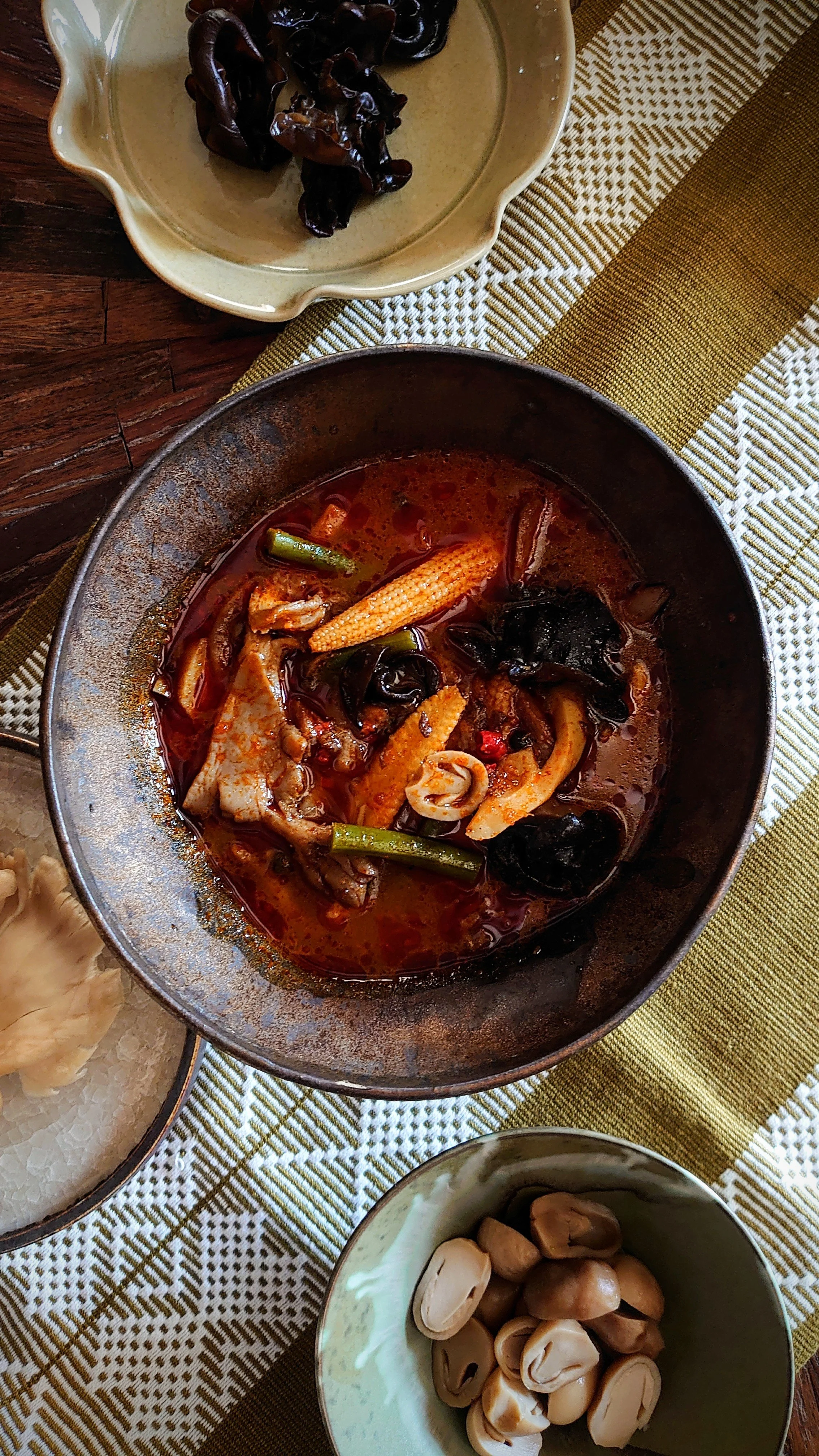 Jungle Curry Soup (Thailand) - The notoriously fiery Thai jungle curry re-omagined as a vegan mushroom soup. Featuring wood ear and straw mushrooms